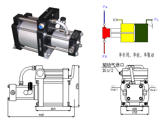 DTA系列泵是標(biāo)準(zhǔn)單氣動(dòng)頭單作用泵,可充氮?dú)?、空氣及大部份氣體介質(zhì),泵體采用優(yōu)質(zhì)鋁合金和不銹鋼缸體活塞,驅(qū)動(dòng)缸徑分160mm、200mm、240mm三種規(guī)格,具有結(jié)構(gòu)緊湊、堅(jiān)固耐用、大流量等特點(diǎn)。所有DTA系列泵根據(jù)使用加壓介質(zhì)的不同采用相應(yīng)材料密封件.