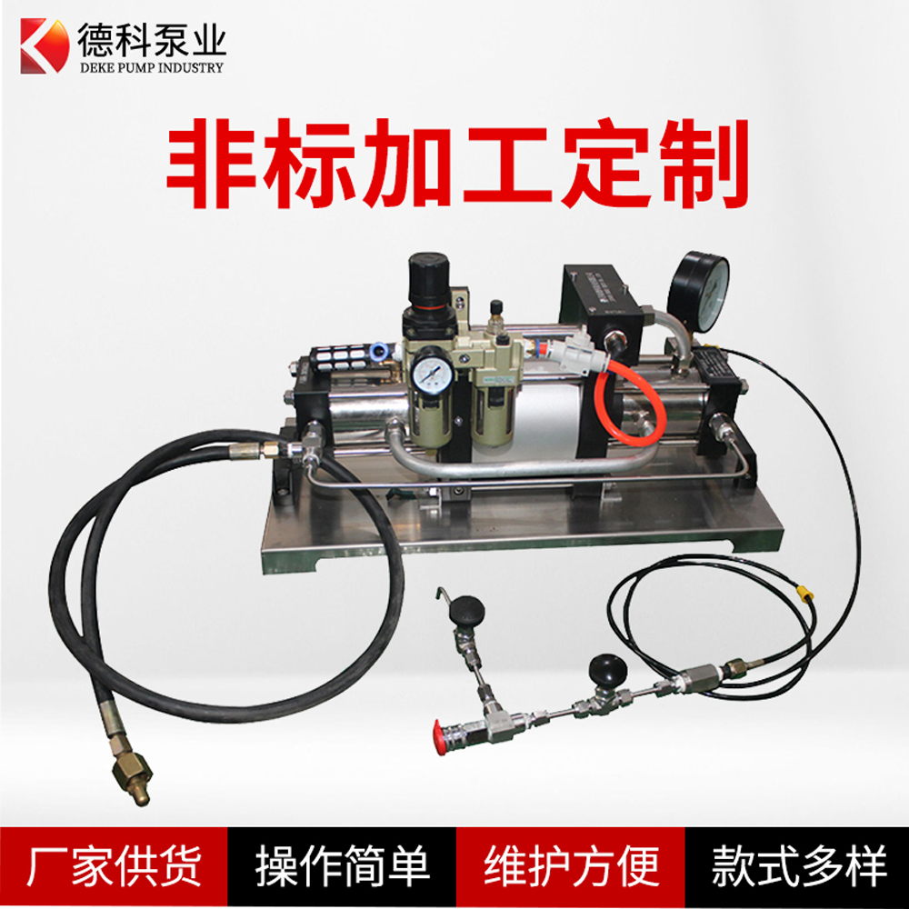1.濟(jì)南德科氮?dú)庠鰤罕每梢栽鰤焊鞣N壓力的氮?dú)?,包括高壓氮?dú)馄?、制氮機(jī)等,增壓壓力測試范圍從零點(diǎn)幾兆帕到一百多兆帕可以無級別限制調(diào)節(jié)氣體壓力,只需要通過控制驅(qū)動氣體壓力便可以實(shí)現(xiàn)超高壓氣體壓力的調(diào)節(jié)控制。